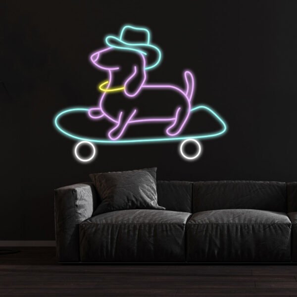 Skateboard Dachshund Neon Sign Cute Cowboy Hat Dog LED Neon Light, Light Up Sign for Bedroom Decor, Pet Shop Art Wall Decoration, Bar Decor