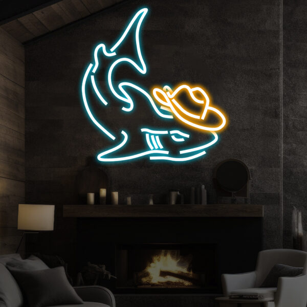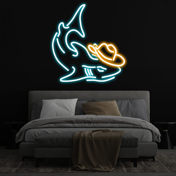 Cowboy Shark Neon Light, Neon Sign Light Decor, Shark Bedroom Neon Sign, Sea Shark Led Light, Home Neon Lights, Shark Wall Decoration