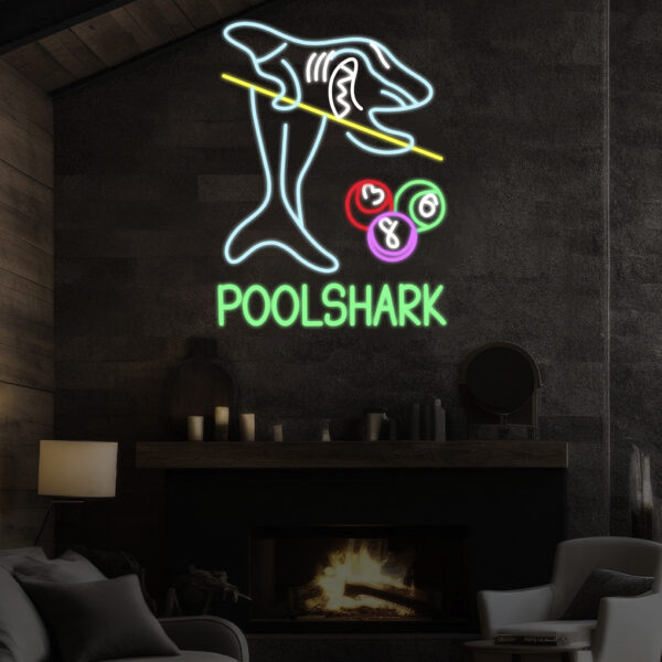Custom Pool Shark Billiards Neon Sign for Game Room, Billiards Hall, Garage Sign for Wall Decor, Man Cave Neon Sign, Bar Sign, Business Sign