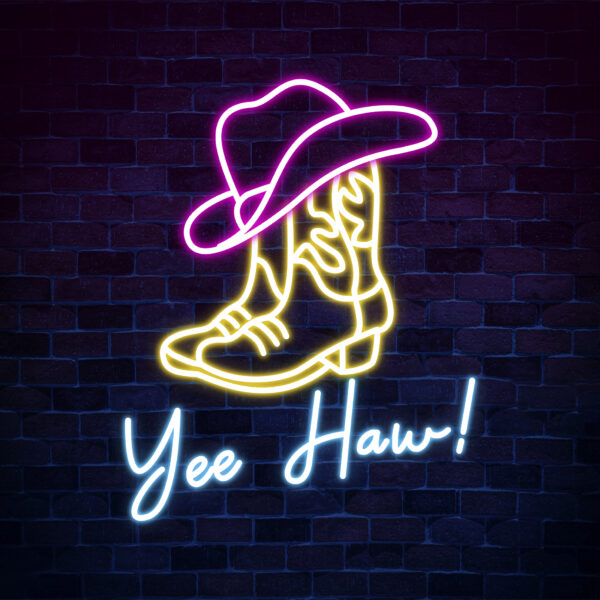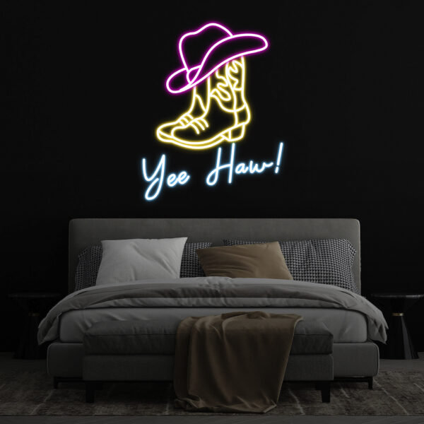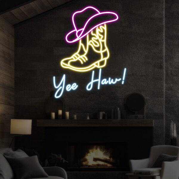 Custom Yee Haw Manimo Cowboy Boot and Hat Neon Sign, Pink Cowgirl Hat Neon Sign Wall Decor, Aesthetic Western Wall Art, Bedroom Decor